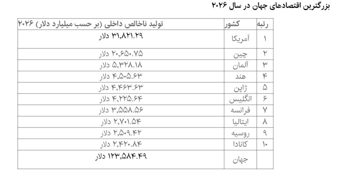 بزرگترین اقتصادهای جهان در ۲۰۲۶